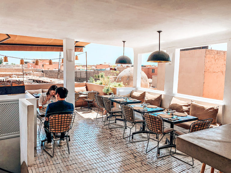 This restaurant makes me think “Marrakech meets Tulum”. Enjoy a selection of different meals including vegetarian options. The restaurant has options to sit inside or sit on the rooftop overlooking a square where you can people watch those negotiating in the nearby Souks.