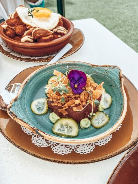 We started off our afternoon in the heart of Wynwood, with brunch at Wynwood Kitchen & Bar. Their Latin-inspired global cuisine is served tapas style, which if you know us, is one of our favorite ways to eat! Instead of filling up on just one tasty dish you get to try and share several smaller plates, and sharing is caring, (especially when it comes to food) Haha.