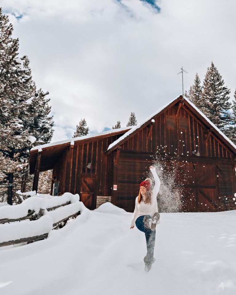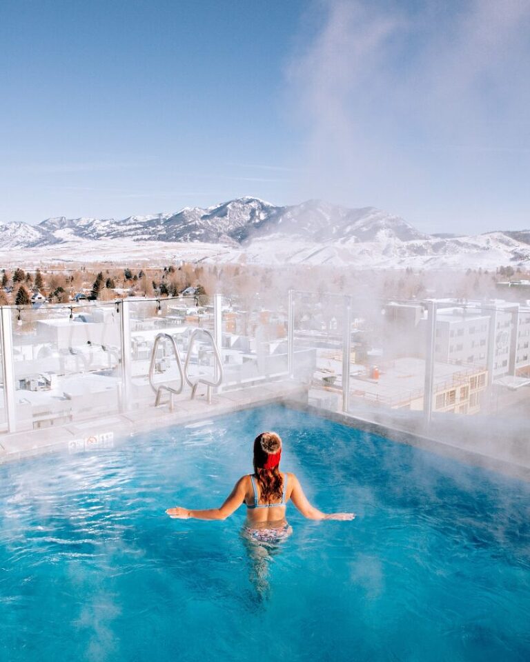 Some of the most epic and beautiful Instagram photos with snow are when someone is in a pool, hot tub or water of some sort like a hot spring. The blue water really pops with the snow capped mountains or any white snow that will be in your image.