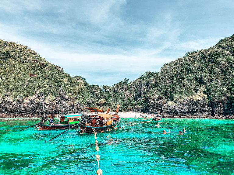 If you’re thinking of visiting Phi Phi Islands off the coast of Phuket in Thailand, I highly recommend renting a longtail boat. It was a great way to see the entire island. You can negotiate your price with these companies but expect to find the price to be around 2300 baht. The tour included a captain of the boat, and 6 hours to visit any of the coves or islands around Phi Phi.