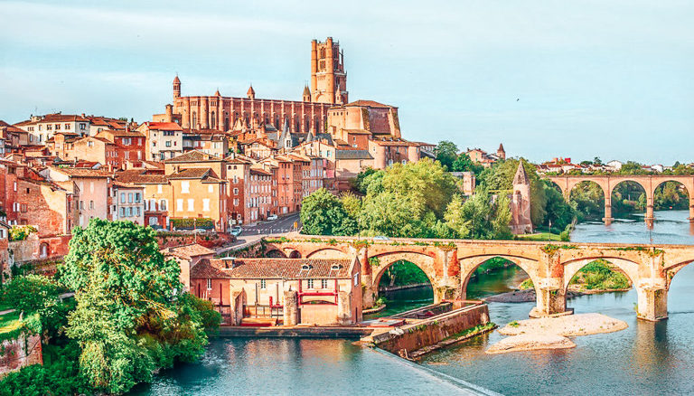 Toulouse, known as the Pink City, is in southwestern France. It runs along the River Garonne and gets its nickname from use of distinctive pink terra cotta bricks.