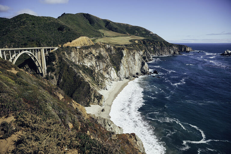 The Bixby Bridge, which is in the Northern area of Big Sur on the Pacific Coast Highway is one of the most photographed bridges on the West Coast of the United States. There are two angles of the Bixby Bridge to enjoy. Parking can be limited and with a two lane highway, be careful turning around. There are some beautiful views of the beach below. If you have extra time, there is hiking path down to the beach below from this point.